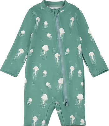 Keep your little jellyfish protected from the surf, sand and sea in this one-piece rashguard swimsuit cut from quick-drying fabric with built-in UPF 50+ sun protection.
