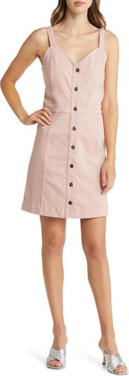 Luminous goldtone buttons travel down the placket of this effortless minidress cut from stretch-kissed denim.