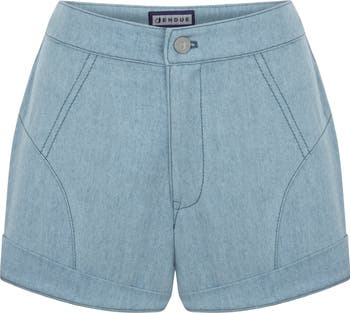Introducing the Marvel denim short with a modern twist. Feature mid rise belt this mini short brings a modern and sophisticated vibe to your ensemble. It is secured with a metallic button and a zipper fastening. Playful stitches elevate the design, making it a standout addition to your wardrobe.