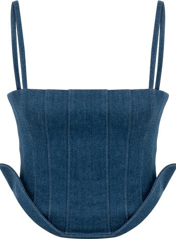 Effortless style meets everyday functionality with our Sosa top that seamlessly transition from day to night Crafted from denim, this top features 3D waist detail and delicated straps add a touch of elegance. Seductive bustier neckline and the corset shape make you feel fabulous.