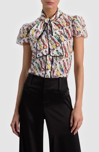 The brand's beloved signature image comes through in vibrant color to pattern a pussy-bow shirt cut from luxe silk.