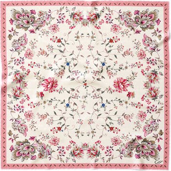 This pure silk bandana features a graceful floral print—tiny blossoms scattered like they were pressed between pages. Wear it knotted at the neck, in your hair, or tied to your favorite bag. It’s the kind of piece that makes even jeans and a tee feel special.
