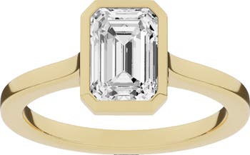 Add brilliant sparkle to your hand with this emerald-cut ring showcasing a stunning lab-created diamond.