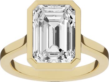 Add brilliant sparkle to your hand with this emerald-cut ring showcasing a stunning lab-created diamond.