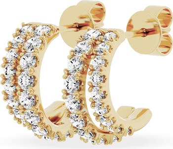 Hoops of different diameters make for an elegantly mismatched style statement in these 18-karat-gold earrings set with 18 lab-created diamonds each.