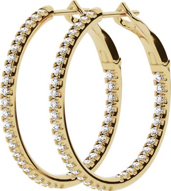 Add fiery light to your lobes with these elegant hoop earrings adorned with stunning lab-created diamonds.