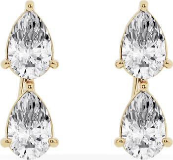 Light up your lobes with these stud earrings, each featuring two stunning lab-created diamonds in pear-cut silhouettes.