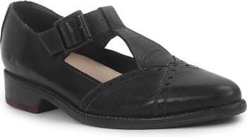 Jenny is like the girl next-door; casual, unhurried, one of life’s little comforts. With an uncomplicated design, Jenny is easy to pair with everything in your closet, try with or without a sock. Details like a T strap pointed toe, perforation cut outs, statement metal buckle and pop of red leather lining give her character. A cushioned insole, and a low heel give Jenny her comfort - Two great things in one.