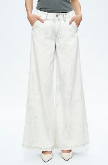 A bleached-out wash lends a playful feel to retro wide-leg jeans made with a mid rise and soft, low-stretch denim.