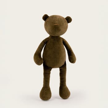 This petite version of our classic Jermaine is just as charming, lovingly handcrafted from GOTS-certified velour jersey (80% organic cotton, 20% polyester). Meeting European and American safety standards, he’s safe from birth and perfect for little hands. With hand-embroidered details on his face and paws, Jermaine reflects true craftsmanship in every stitch. His soft plush stuffing makes him wonderfully cuddly despite his smaller size, ideal for snuggles at home or adventures on the go. Available in three beautiful soft colors, Jermaine, the bear in small is a delightful treasure for children and adults alike – a timeless friend in a perfectly portable size.