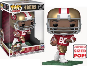Take to the field with Pop! Jumbo Jerry Rice as he scores a game-winning touchdown! Wearing his San Francisco 49ers jersey, Pop! Jumbo Jerry Rice is ready to intercept your NFL collection. Show your team spirit and expand your NFL set to build your fantasy football team. Vinyl figure is approximately 10 inches tall.