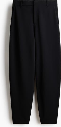 Trousers in heavy jersey featuring a high, elasticated waist with a zip fly and a concealed hook-and-bar fastener, diagonal side pockets and barrel legs.