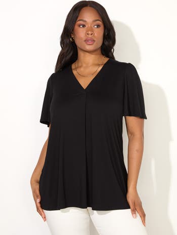 Jersey Flutter Sleeve V-Neck T-Shirt