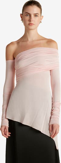 This asymmetrical top, cut from fluid stretch jersey, is and artfully draped across the body featuring a handkerchief hem. A versatile silhouette to transition you from day to evening. Pair with our Wool Pinstripe Tailored Trouser.