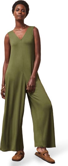 This Jersey V-Neck Jumpsuit offers a sleek, comfortable fit with soft-touch fabric. Perfect for casual outings or chic events, its loose fit and flattering neckline enhance style.