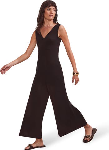 This Jersey V-Neck Jumpsuit offers a sleek, comfortable fit with soft-touch fabric. Perfect for casual outings or chic events, its loose fit and flattering neckline enhance style.