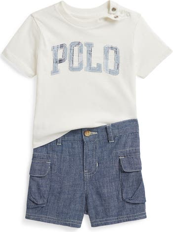 You'll love the sporty look of this tiny ensemble, while baby loves the comfortable fit of the cotton T-shirt and soft chambray shorts.