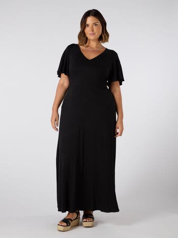 Cut from a soft jersey fabric this Black Maxi Dress is a wardrobe staple and one that will take you through the seasons in style. It has a gathered V-neckline that just looks so flattering and the maxi length creates a gorgeous silhouette. It has short flutter sleeves allow coverage of your shoulders whilst still having your arms out. It slips on over your head with ease making it the perfect everyday dress.