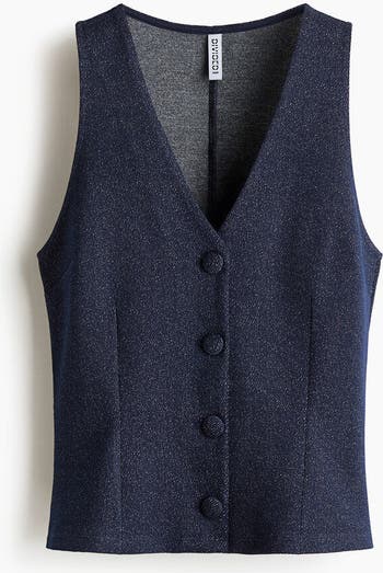 Fitted waistcoat in interlock jersey with a denim look, featuring a V-neckline and covered buttons down the front.