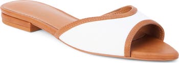 A colorblocked vamp strap adds a summery feel to this slide sandal designed with a retro pointed footbed.