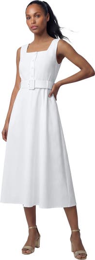 A breathable linen-blend midi designed with soft shaping, smocked comfort, and effortless warm-weather polish.
