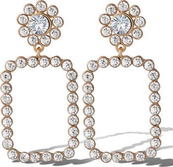 Gold-Tone Pave Rectangle Drop Earrings