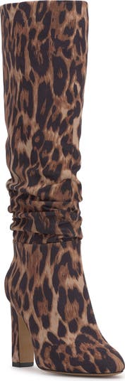 This slouchy knee-high boot elevates you on a towering shaved block heel.