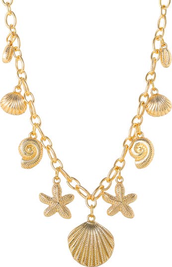 Ocean Charms Necklace for Women, 16"+3" Gold-Tone Chunky Necklace with 9 Charms