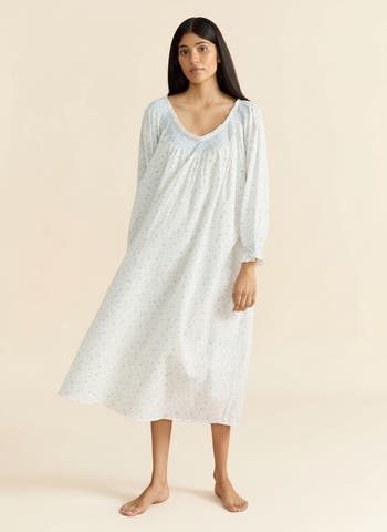 This 3/4 length nightdress in delicate cornflower blue is lightweight and breathable in soft cotton cambric. Jessie features a hand-smocked, elasticated neckline and matching smocked cuffs, making her easy to slip on and floaty in feel - the perfect cozy evening companion.