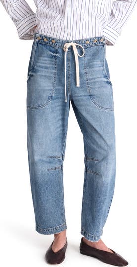 Designed in a desirous barrel silhouette, these laid-back jeans are updated with a drapey waist tie for a comfortable fit.