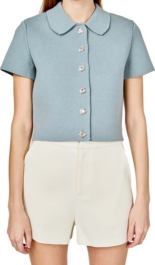 Bejeweled buttons shine along the placket of this cotton-blend top that brings a perfect mix of chic style and preppy aesthetics to your look.