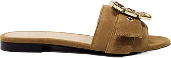 Elevate your warm-weather wardrobe with this sophisticated suede sandal, featuring an ornamental jeweled buckle that catches the light with understated elegance. Crafted from premium black suede, the design balances comfort with refined style—ideal for transitioning from casual daytime wear to evening occasions. The secure buckle closure ensures a customized fit, while the quality construction promises durability through seasons of wear. A versatile essential for those who appreciate timeless footwear craftsmanship.