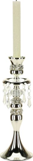 Elevate your décor with the Mark Roberts Jeweled Hanging Crystal Pedestal Candleholder, standing an elegant 12.5 inches tall. Intricately adorned with shimmering crystals and jeweled accents, this piece catches and reflects light beautifully for a luxurious ambiance. Perfect as a centerpiece or accent, it adds timeless glamour to holiday or year-round displays.