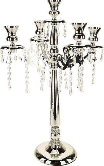 The Mark Roberts Jeweled Pedestal Candelabra stands 25 inches tall and features an elegant pedestal base adorned with intricate jewel detailing. Cascading hanging crystals add dramatic sparkle, catching the light beautifully for a luxurious display. Perfect for formal tables, mantels, or holiday décor, this statement piece brings timeless glamour to any setting.