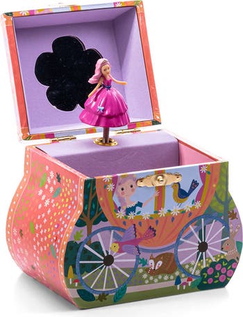 Fairy Tale Carriage Musical jewelry Box – A Magical Keepsake! Shaped like a beautiful fairy tale carriage, this musical jewelry box is simply adorable. Featuring a charming princess in her glittering carriage, it’s full of sweet, whimsical details. Open the lid to reveal a princess figurine that twirls gracefully to the cheerful tune of ‘Teddy Bears' Picnic’. Inside, you'll find a lovely lilac flocked finish and a delightful flower-shaped mirror, perfect for storing treasured trinkets and keepsakes. Presented in a beautifully illustrated, full-color gift box, it’s the perfect special gift to make magical memories.