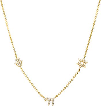 Keep your look effortlessly stylish with the Pave Jewish Pave Charms Necklace by Adina Eden, a must-own Necklace. This charm necklace for women stands out with its soft shine and bold options in Gold. From Netflix nights to rooftop parties, this piece brings your whole look together while keeping things laid-back. Pair this gold plated charm necklace with pieces from our Tennis Necklaces collection to make your everyday styling effortless. A quiet standout that never feels like it's trying too hard.