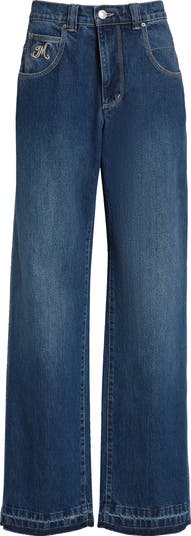 These mid-rise, relaxed-fit jeans cut from nonstretch denim are embroidered with the designer's initials on the coin pocket and finished with triple-needle stitching and frayed, released hems for a lived-in look.
