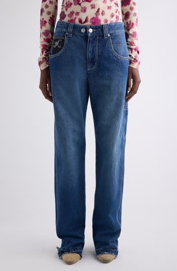These mid-rise, relaxed-fit jeans cut from nonstretch denim are embroidered with the designer's initials on the coin pocket and finished with triple-needle stitching and frayed, released hems for a lived-in look.