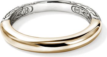 A sleek band design handcrafted from smooth 14-karat gold and engraved sterling silver brings versatile contrast to this ring.