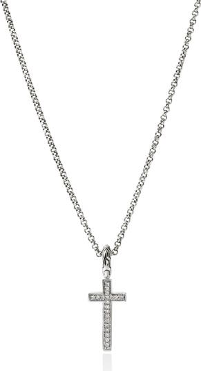 A meaningful addition to your collection or a gift for someone special, this handcrafted sterling silver chain necklace is illuminated by a pavé diamond cross pendant.