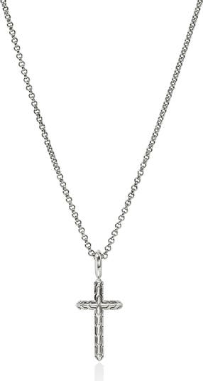 A meaningful addition to your collection or a gift for someone special, this sterling silver chain necklace is anchored with a hand-carved cross pendant.