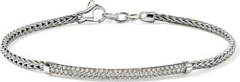 Glittering pavé diamonds bring mesmerizing sparkle to the curved center bar of this sterling silver chain bracelet handwoven in signature Hardy fashion.