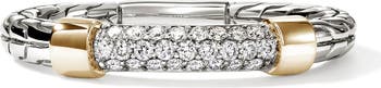 This two-tone band ring is artisan handcrafted with John Hardy's signature carved chain motif and finely set pavé diamonds.