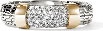 This two-tone band ring is artisan handcrafted with John Hardy's signature carved chain motif and finely set pavé diamonds.