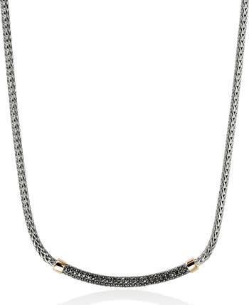 This slender two-tone necklace is artisan handcrafted with John Hardy's signature carved chain motif and finely set pavé black sapphires