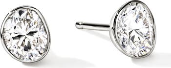 Proprietary cut to maximize brilliance, these lab-grown diamond stud earrings sparkle in undulate, sterling silver settings.