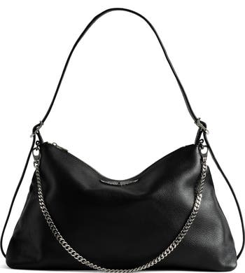 An embellished wing motif adds brand-signature charm to a slouchy shoulder bag shaped from calfskin leather with a richly grained texture.