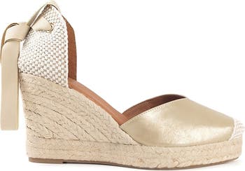 A closed-toe wedge with an elegant tie-back detail that captures effortless summer style.