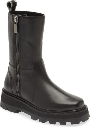 Jimmy Choo deftly merges edgy moto style with urbane sophistication in this biker-inspired boot crafted of burnished leather and set on a chunky lug sole.