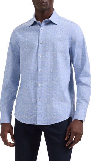 Breathable, eight-way-stretch OoohCotton resists wrinkles to keep you polished and comfortable in this button-up shirt featuring two distinctive prints—abstract flora outside; neat geometries inside. Even better, the double-mercerized fabric dries quickly to keep moisture in check as you move through your day.